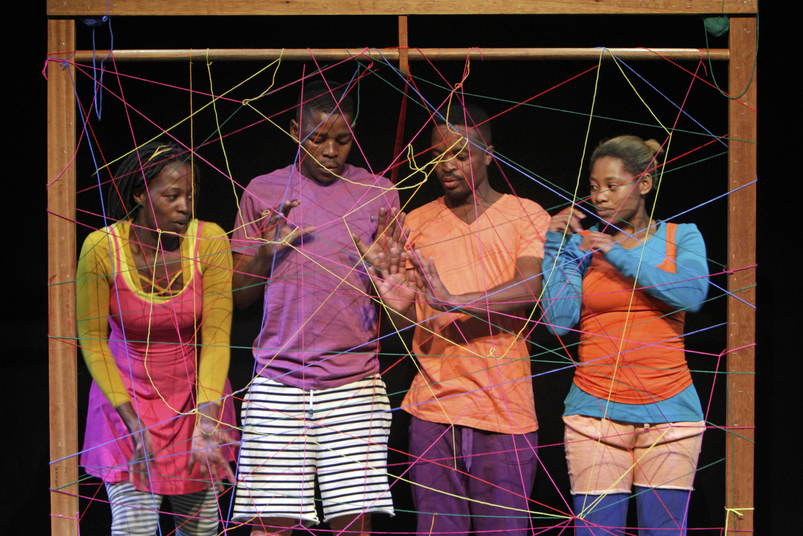 SANDSCAPE  The sound of sand fills the landscape, pouring and falling. 4 actors from Zimbabwe and Nigeria explore the musicality of sand in a moment of drought.