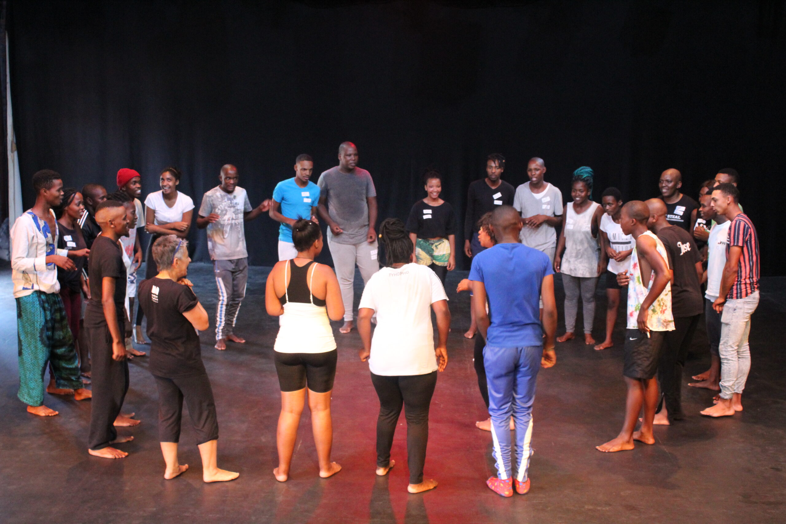 The programme offers a carefully structured programme to 20 talented performers in each 2 year cycle. There are classes in play, imagination, physical theatre, voice, dance, singing, improvisation and play making. Training takes place Monday to Friday between 09h00 and 16h30. There are organised visits to the theatre to expose the groups to mainstream and community performance. They are placed in work shadow in various aspects of the theatre industry. The participants are encouraged to maintain their connection with their communities and with their groups. The programme was originally designed by Jennie Reznek, Mandla Mbothwe and Mark Fleishman, and the classes are taught by highly experienced theatre practitioners and teachers. As always with Magnet Theatre’s work the focus of the training is on the body as a universal language that can communicate across cultures and verbal language while understanding that the teaching of physical theatre is one of the responses to violence and the violated body. The programme focuses on the development of skills and on the ability to generate new work. Each trainee receives a ‘bursary’ (stipend) to ensure that they have transport and food to attend the training.